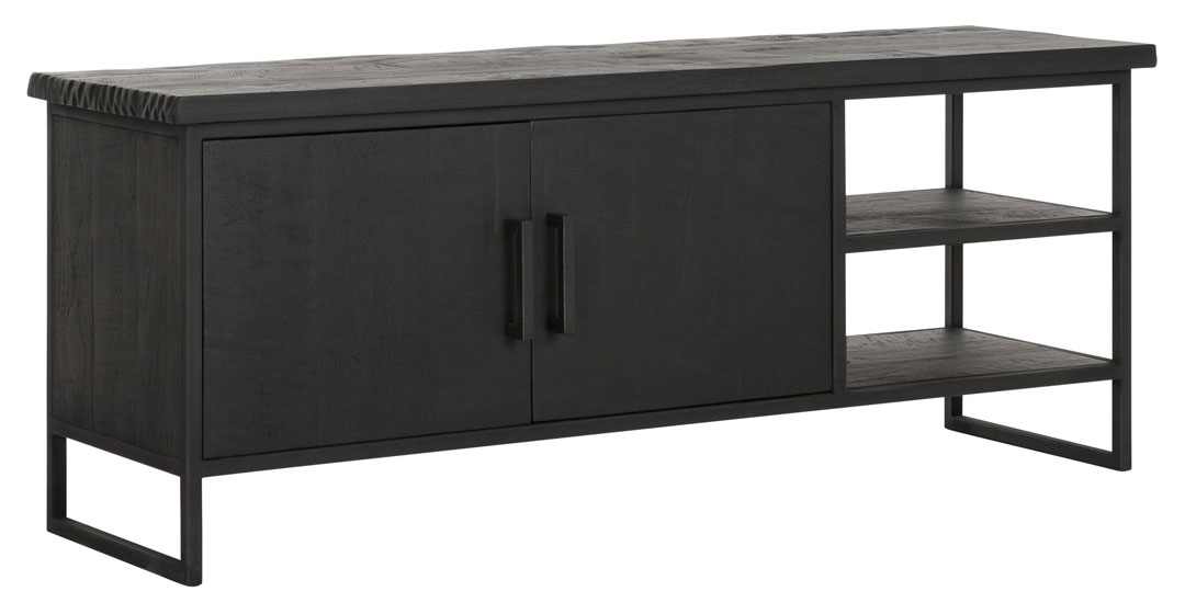 DS 314, Dunkler TV-Schrank mit Türen und offenen Fächern