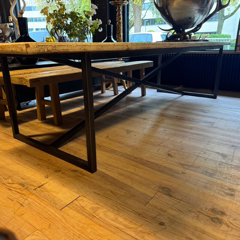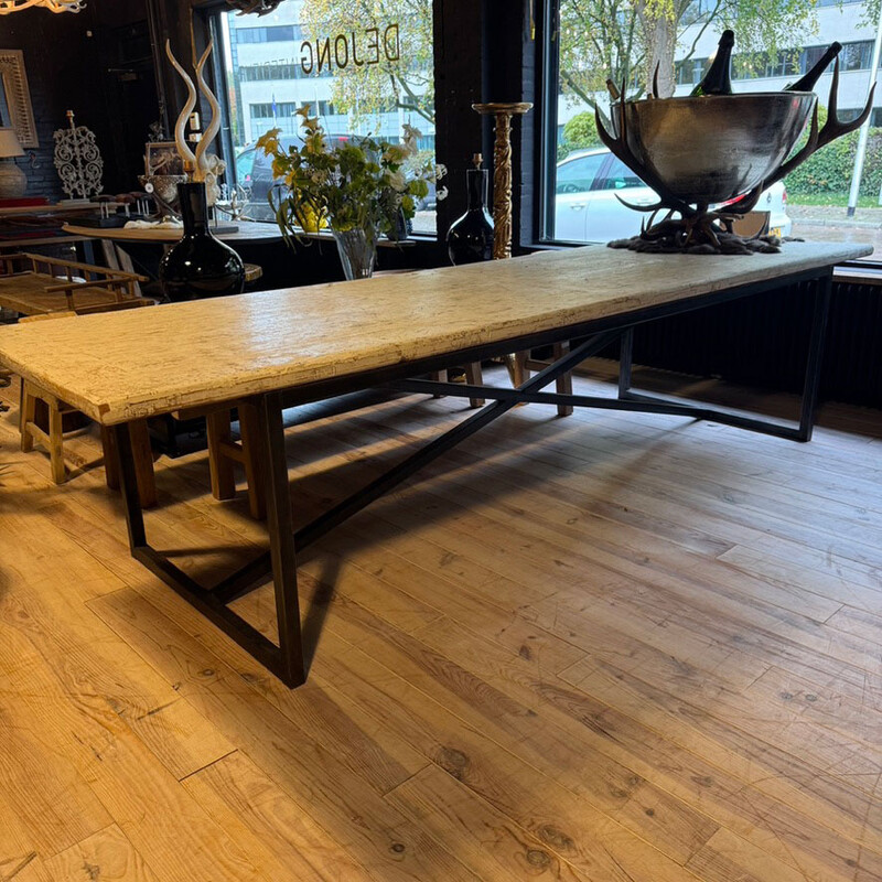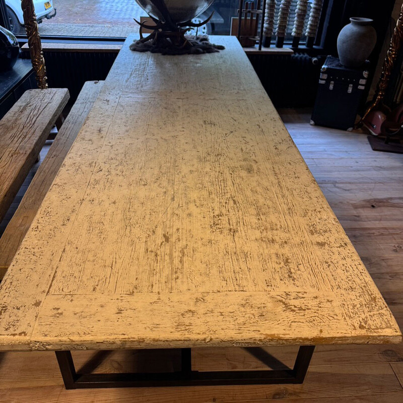 SET 001, Eettafel met wit blad en stalen onderstel