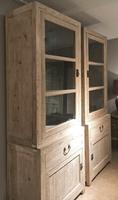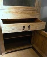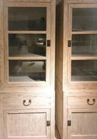 De kast heeft onderin een gesloten deur en een lade, beiden met ijzer beslag. De bovenkant is voorzien van een deur met glas.