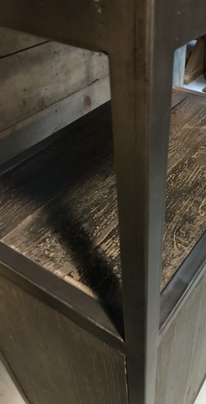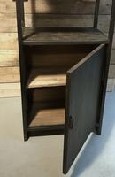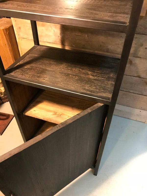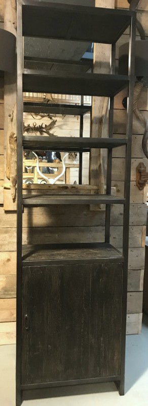 Industriele boekenkast met 1 deur en 4 open vakken.