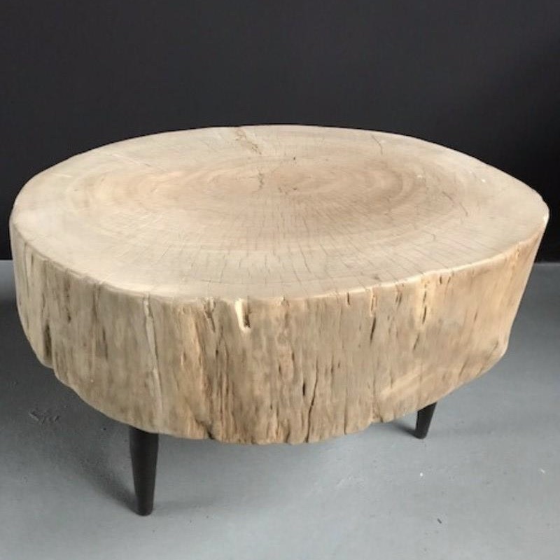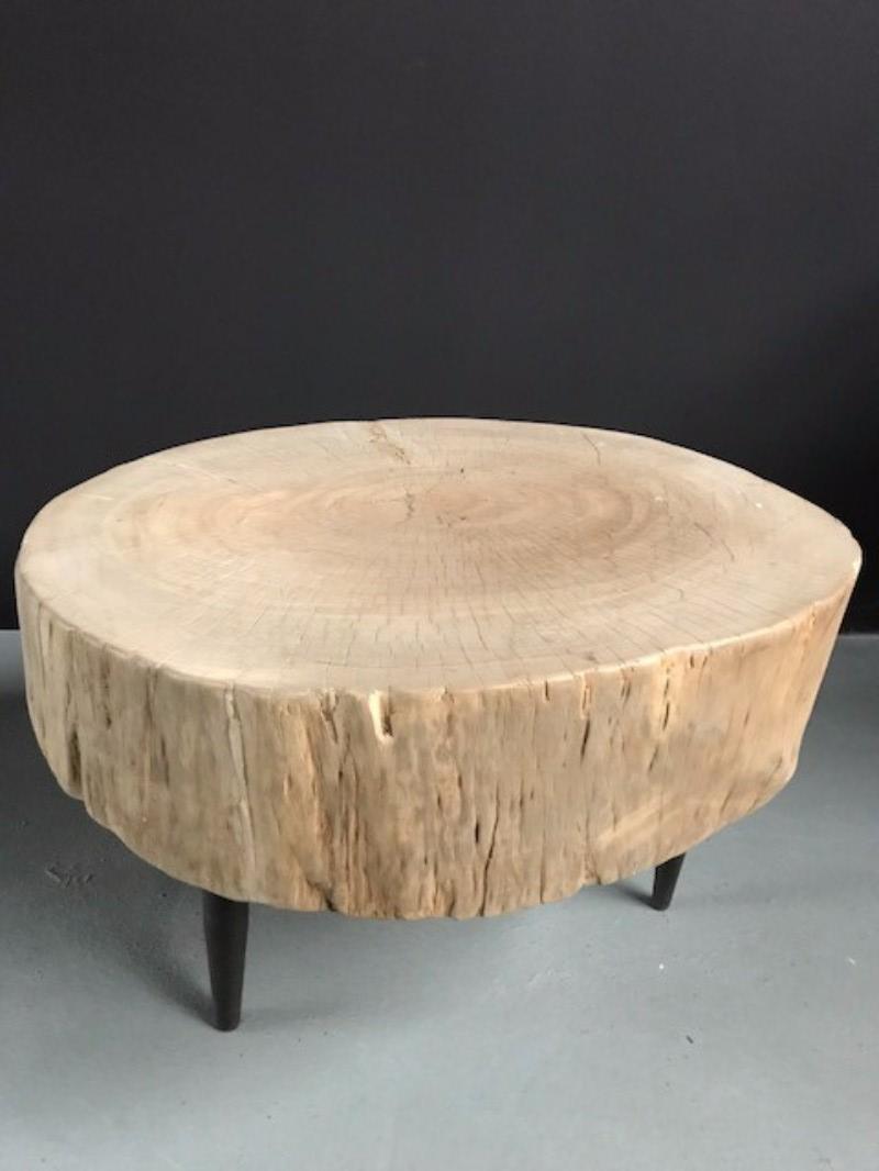 Uniek massief houten bijzettafel gemaakt van boomstam.