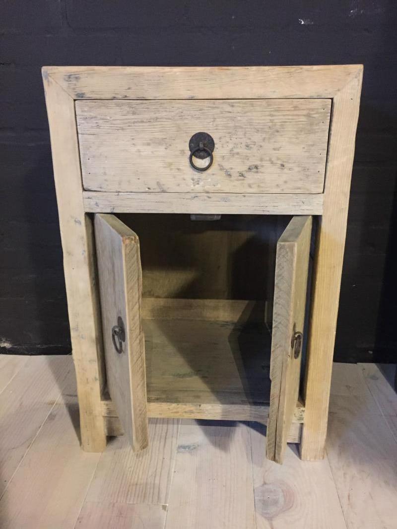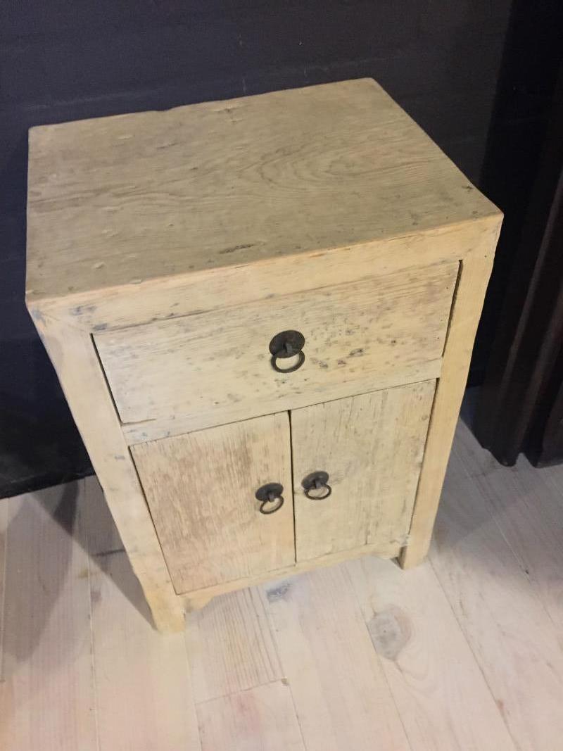 Small closet, nightstand of old wood.